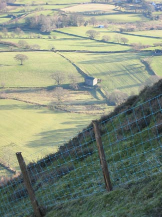 Our route would take us across the second field, past Foulsyke, the white house, and up into the woods at the base of the fell. From there we made our way up to the prominent single Scots Pine half way up the hillside, then left and up the southern end of Low Fell to the viewpoint and then summit a short distance behind.