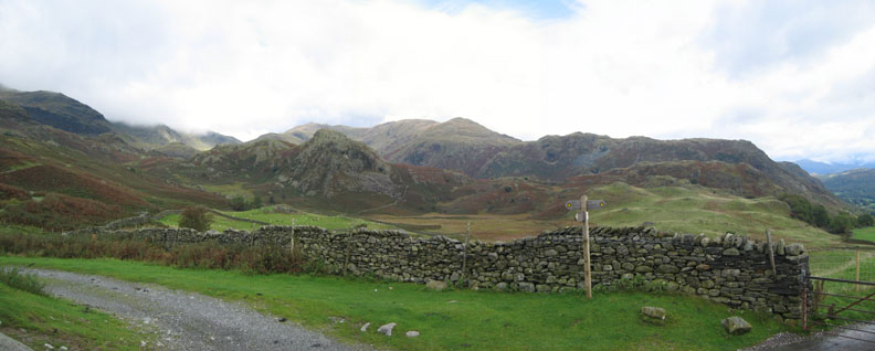 A misty view of Goats Water as we drop down out of the cloud. Similarly, a green Duddon Valley ahead, with perhaps the suggestion of sunlight ? We were making our way down now off Brown Pike to the highest point of the Walna Scar road.