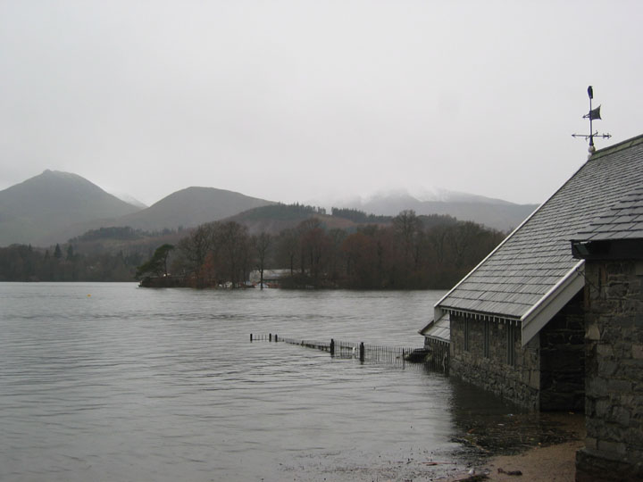 I took the chance of a quick trip down to the lake during my Thursday lunch break. It has been raining a little recently, or more correctly . . . raining heavily for the last five weeks . . . and the water levels everywhere are understandably high. The Boathouse below Theatre by the Lake was flooded nearly up to the top of it's doors and the beach and slipway were completely under water. A wider shot of the Boat Landings. Click here or on the photo for a larger, anotated version.