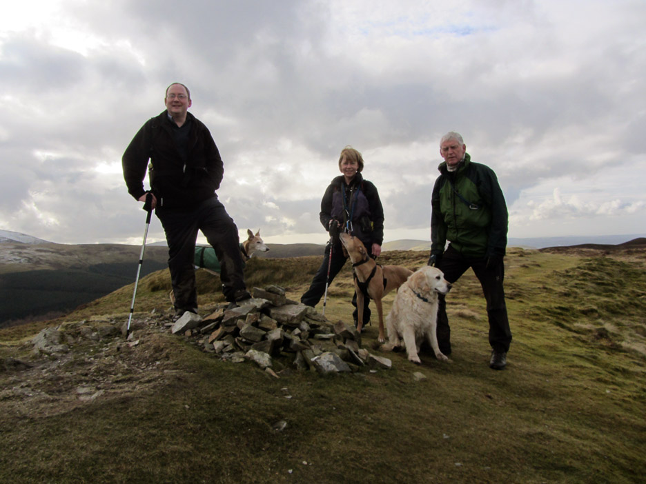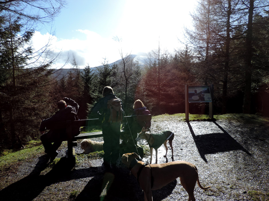 " Whinlatter via Honister " Date & start time: Saturday 1st March 2014, 2 pm start. Location of Start : Revelin Moss car park, Whinlatter, Cumbria, Uk ( NY 209 243 ) Places visited : Revelin Moss, Forest Centre, Whinlatter Fell and Brown How. Walk details : 3.9 mls, 950 ft of ascent, 2 hours 45 mins. Highest point : Whinlatter Fell 1,722ft - 525m. Walked with : Jo, Ian, Ann and the dogs, Jodie, Amber and Harry. Weather : Bit of everything . . . sunshine but a cool breeze on the walk. |