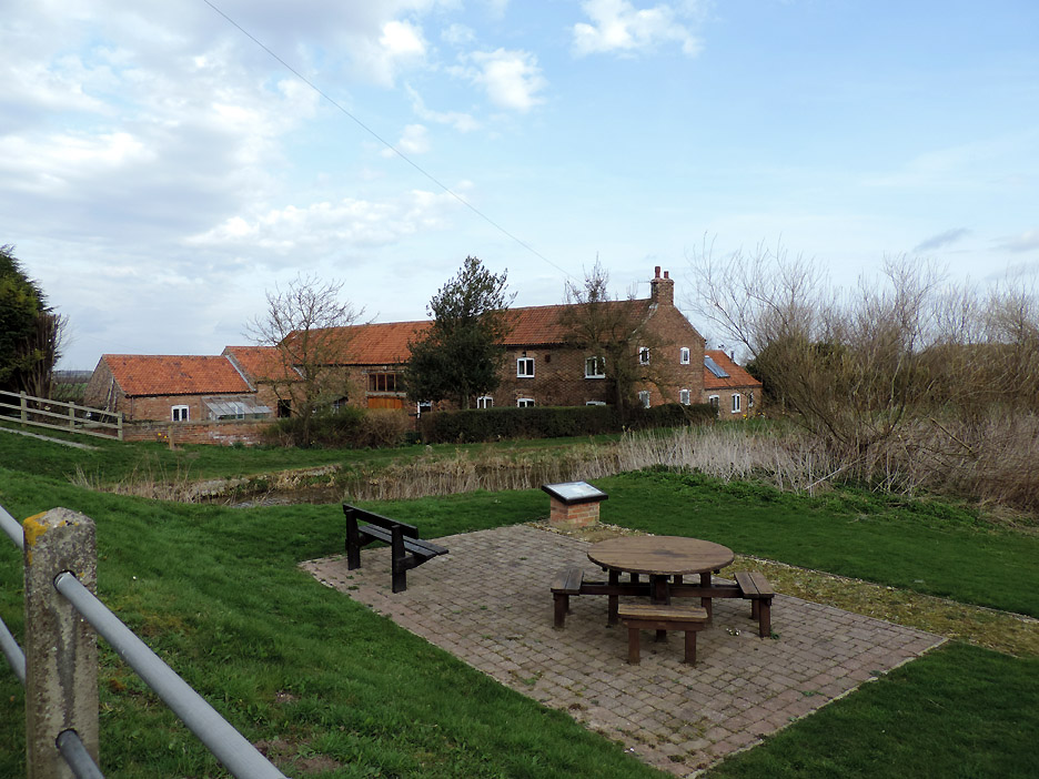 As we passed this young dog jumped up to greet us, trying hard all the time for a closer look ! Hold your cursor over the picture to see what I mean. At the bottom of the village is a field dedicated to a Dog Training school. A round table and a bench next to the water . . . we had reached the canal.