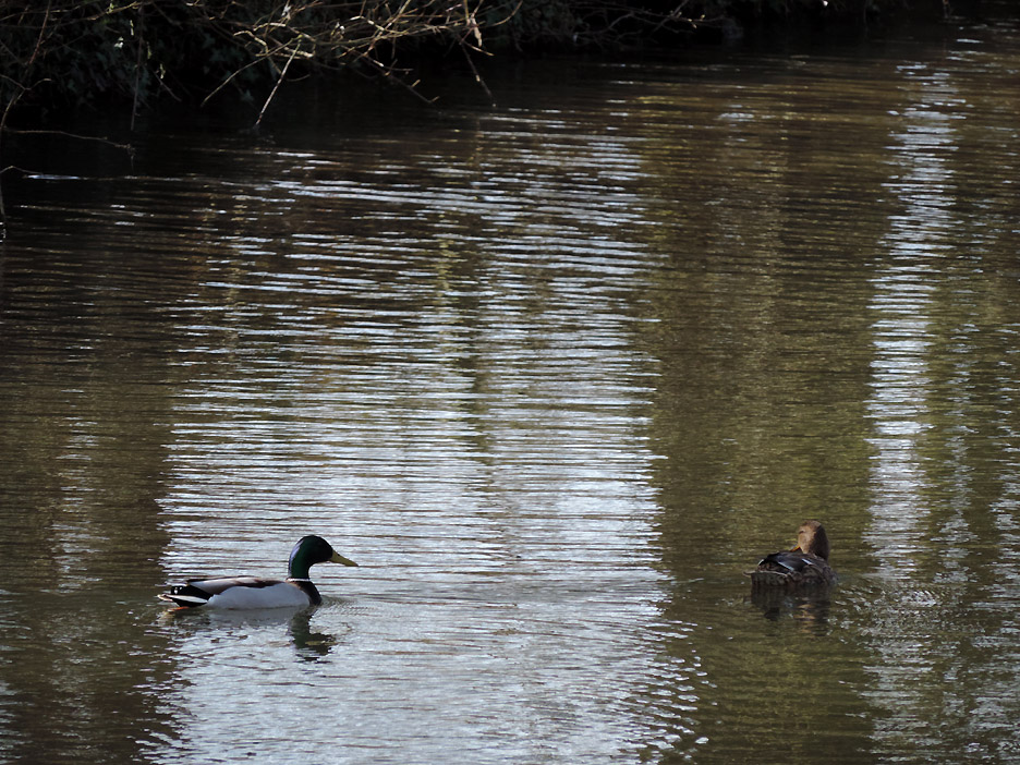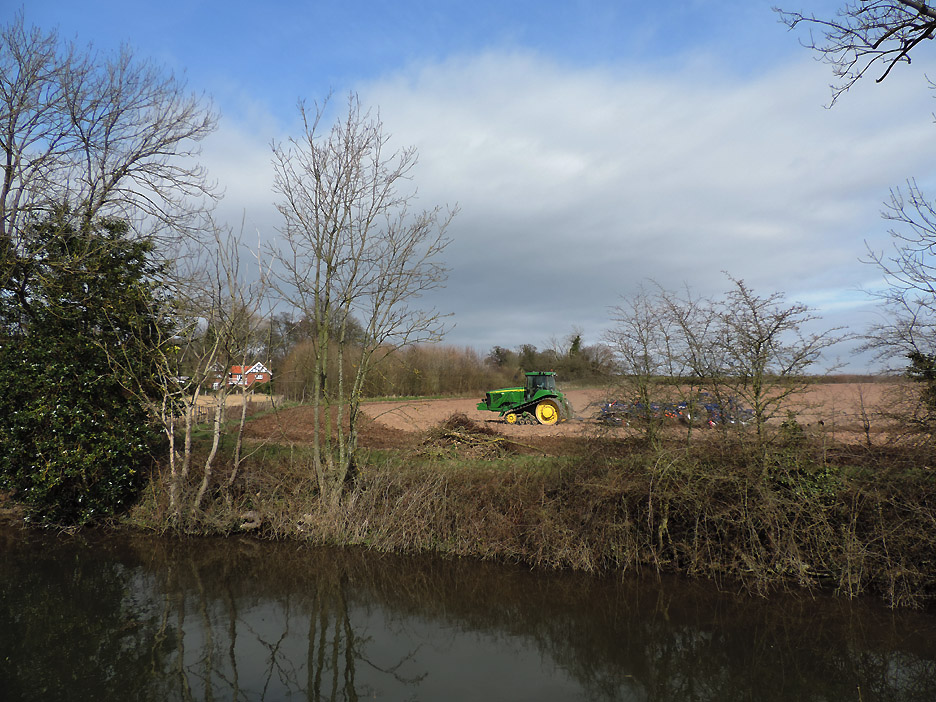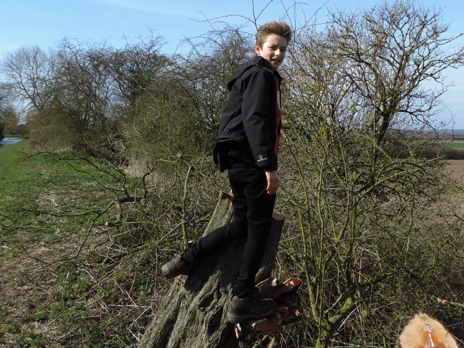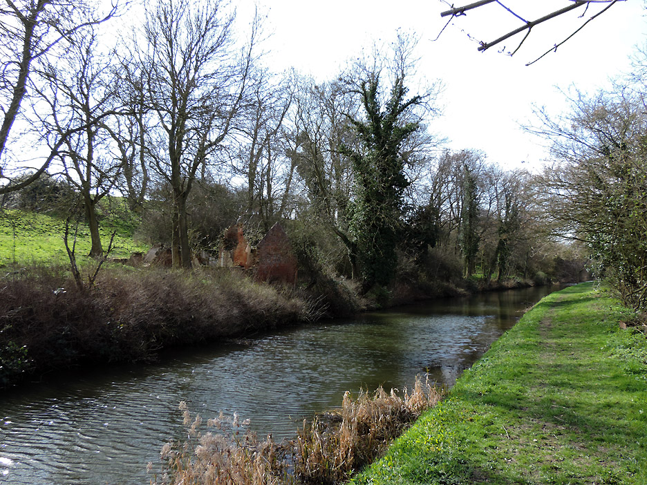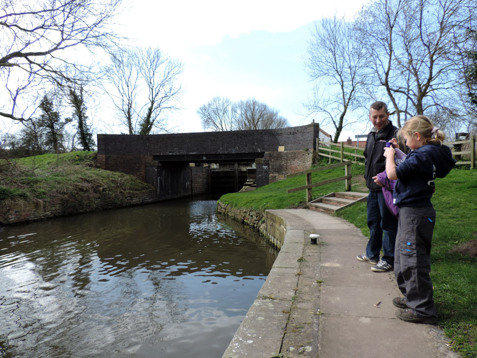 The first bridge of our walk known as Middle Bridge as there are three bridges for three parallel roads on this side of the village. I held back slightly to catch this group photo of the family down on the towpath. Paula, Abi, Tom, Al and Ann. Abi has a new camera and wanted to take her own pictures close to the next bridge. This was the overflow tunnel from the adjacent lock gates. It all goes to prove that, although the canal seems level, there is a constant movement of water along its length. The lock gates and Keepers Cottage. The overflow stream carries the excess water from above the second lock gate to avoid the canal overflowing the lock. This is extensive arable country with flat fields as far as the eye can see. This crop was some sort of beet or kale, it was too early to tell exactly what from the leaves. Gentle walking along the canal tow path . . . . . . in the lovely sunshine. Abi and Ann making use of a fallen tree for a few moments . . . . . . whilst Tom takes a more elevated view of life. An old building on the opposite bank of the canal has seen better days. Canal wildlife, Mr and Mrs Mallard. As we walked along we tried to draw level with them . . . . . . but each time they flew off and landed a little further up the canal till they got bored and flew away completely. The canal has to negotiate Cuckoo Hill. It could be done with a longer diversion to the west but the choice was to build a short tunnel.