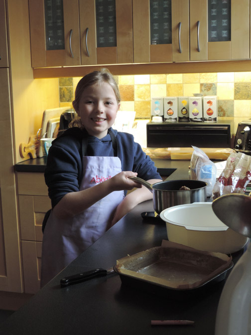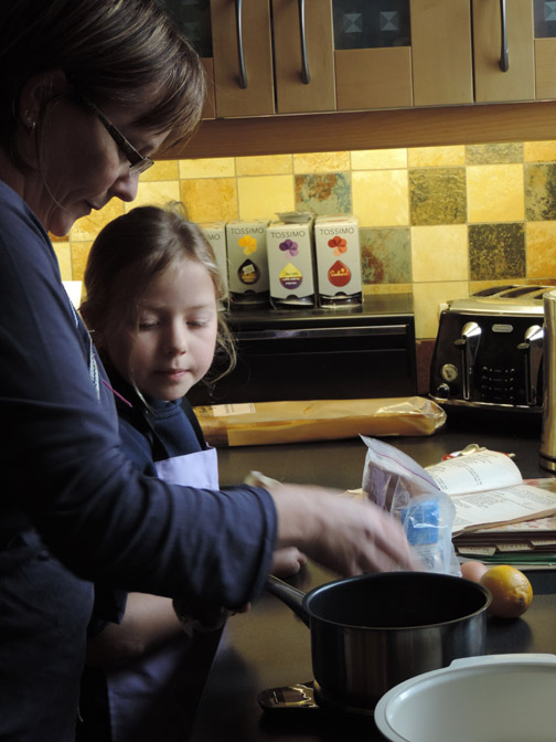 A more ornate bridge close to Wiseton Hall. That's a big tractor working in the fields of Prospect Hill Farm. It is towing quite a long and complicated trailer too. As it turns, the purpose of the trailer becomes apparent. It is a multiple plough / disc harrow machine preparing the soil ready for planting. The big road wheels hydraulically drop to lift the implements clear of the ground and allow the whole thing to turn. Leaving the canal at the next bridge, we cross over and walk pass Wiseton Lodge and its well maintained grounds. The footpath takes us uphill now, back towards Gringley . . . on the Hill. This old windmill has been converted to living accommodation. A short road walk through the village brings us back to the Market Cross and the end of our walk. Time to get back for a spot of lunch. Afterwards Tom went kayaking with the Scouts and the rest of us stayed home and relaxed. - - - - o o o - - - Before he went out Paula and Tom had made a lovely mixed-berry cheesecake. After lunch it was Abi's turn to create a culinary masterpiece in the kitchen.